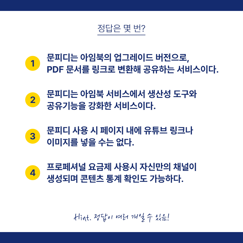 ① 문피디는 아임북의 업그레이드 버전으로, PDF 문서를 링크로 변환해 공유하는 서비스이다.