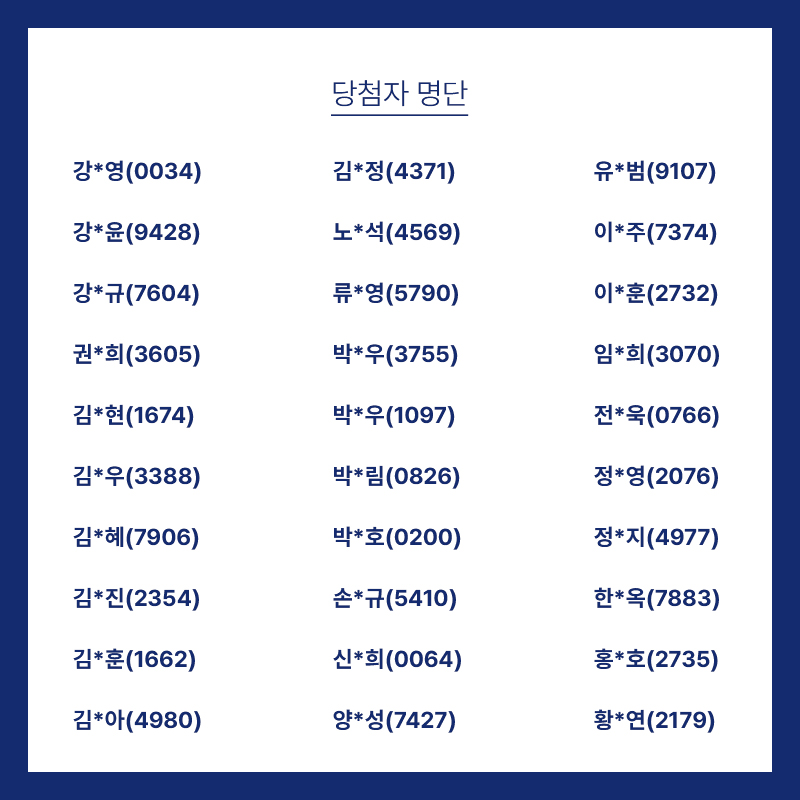 ※당첨자 명단 확인은 이름(휴대폰 번호 뒷자리)로 확인하실 수 있습니다.