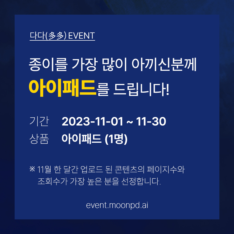 종이를 가장 많이 아끼신 한 분께 문피디 활용하기 좋은 아이패드를 드립니다.
